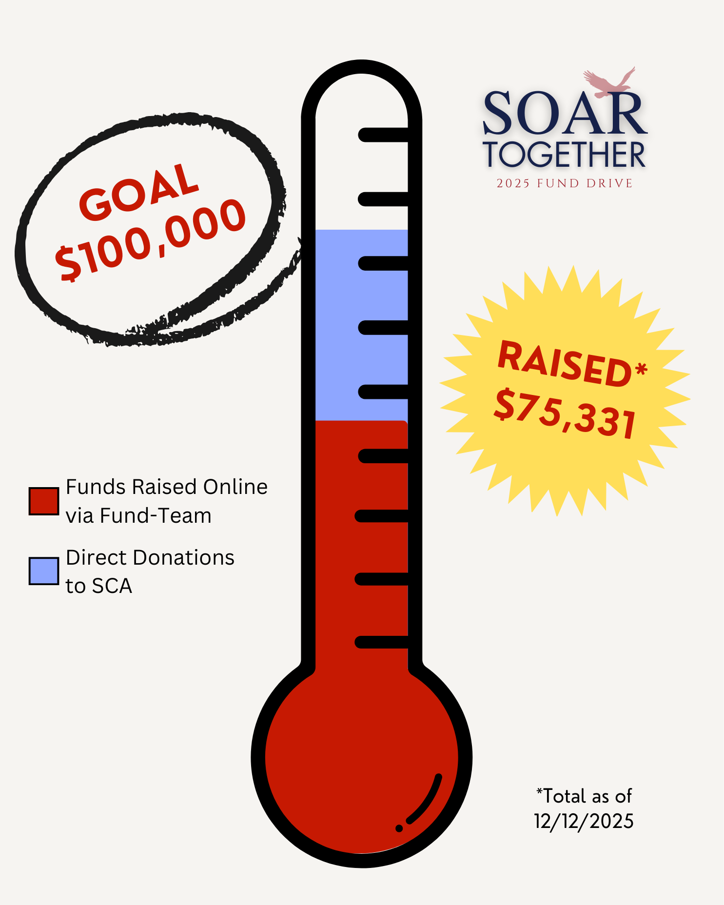 SCA has kicked off its annual drive to raise funds for Summit initiatives, and this year we have an important one. Our goal is to raise $100,000 for the Soar Together fund!
