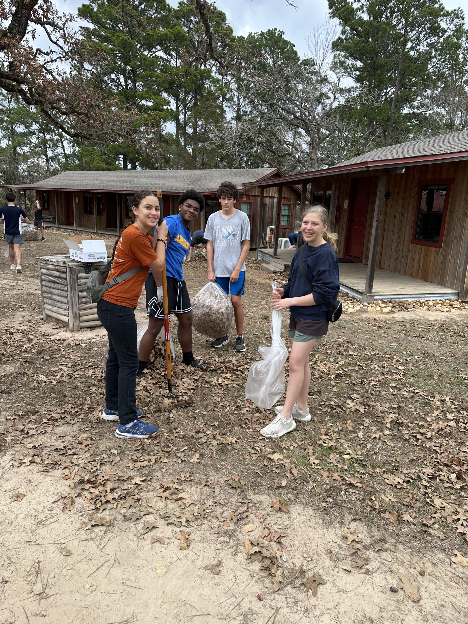 After filling up four trailers with raked and bagged leaves, the freshmen were encouraged to approach Camp Tejas staff and interns to ask if there was anything they could pray for them about. For many students, this was a courageous “entry-level” challenge that showed them they could overcome fear and be obedient to the Lord’s leading.